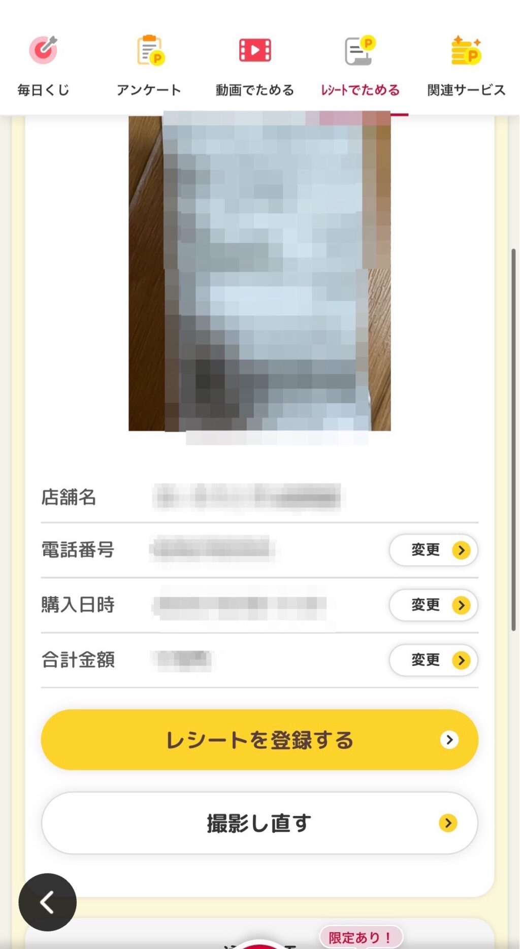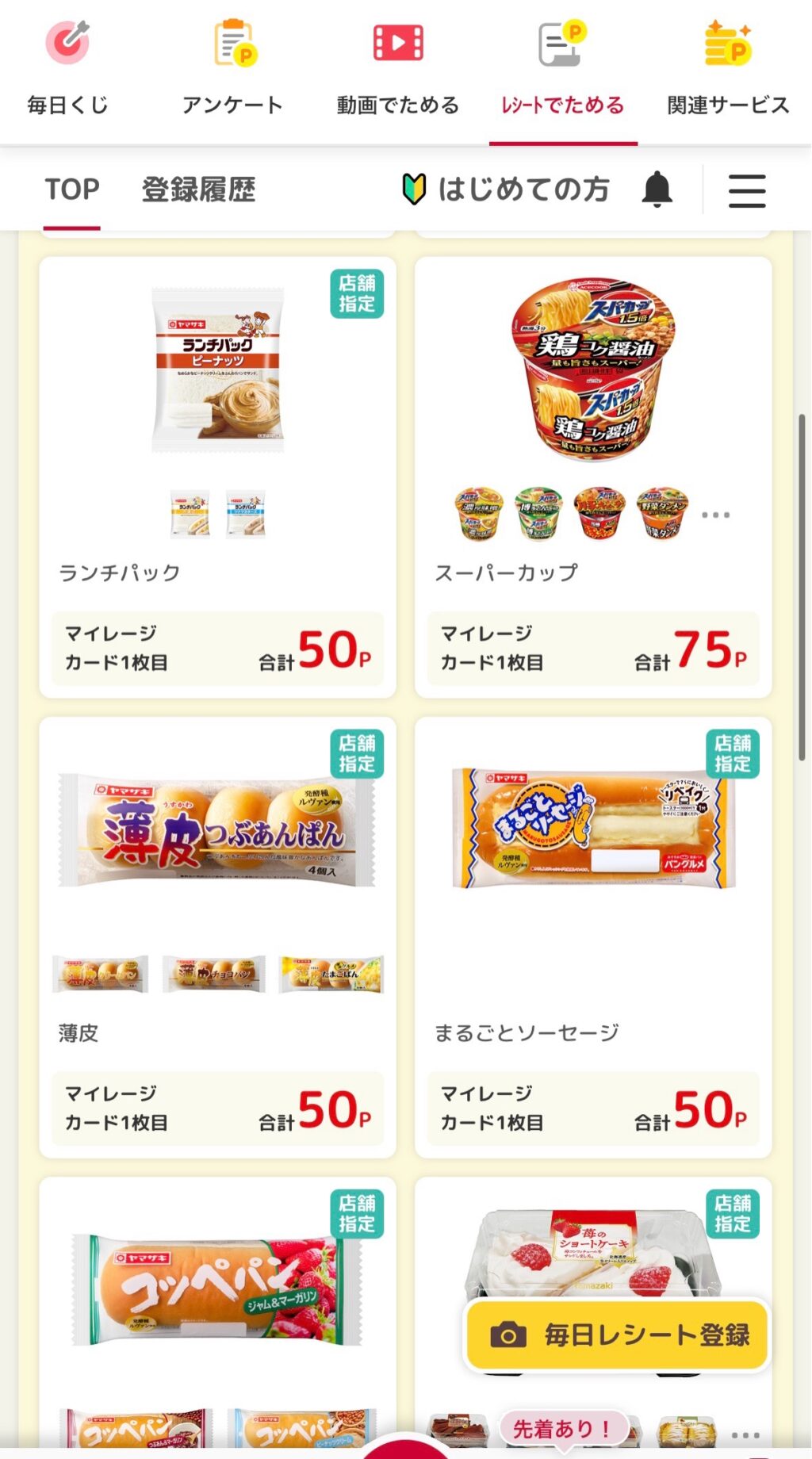 アプリを経由して、購入時に貰ったレシートを撮影・登録をして、ポイントを貰います!